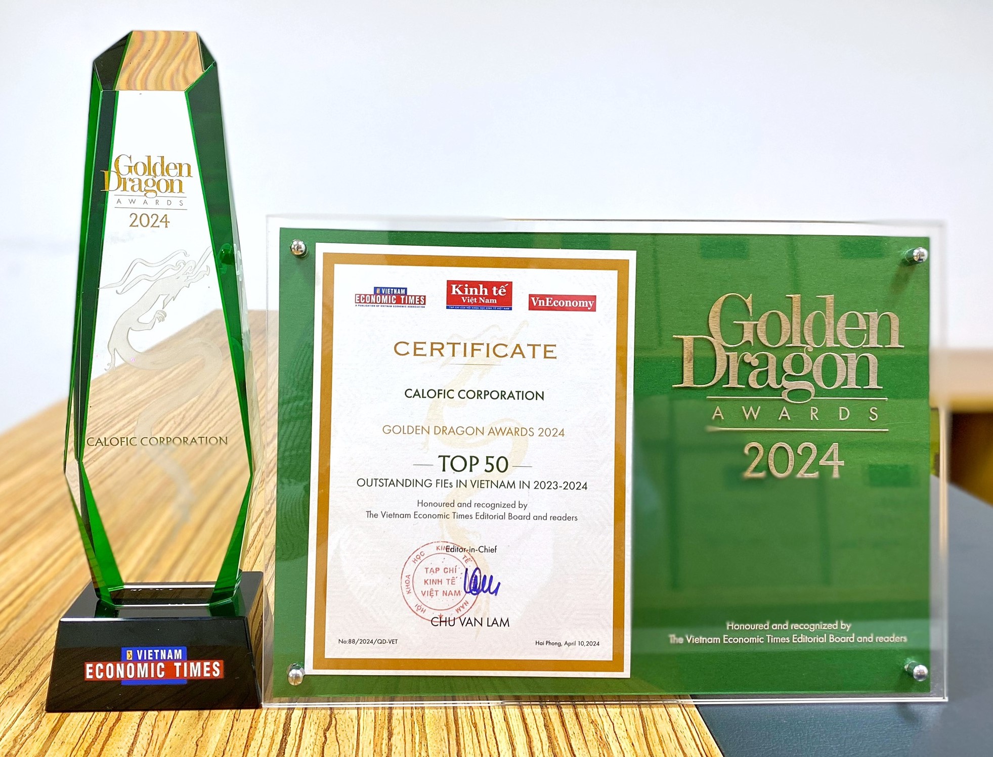 Trong khuôn khổ chương trình, CALOFIC đã vinh dự nhận giải thưởng Rồng Vàng – thuộc Top 50 Doanh nghiệp FDI tiêu biểu thúc đẩy tăng trưởng xanh.