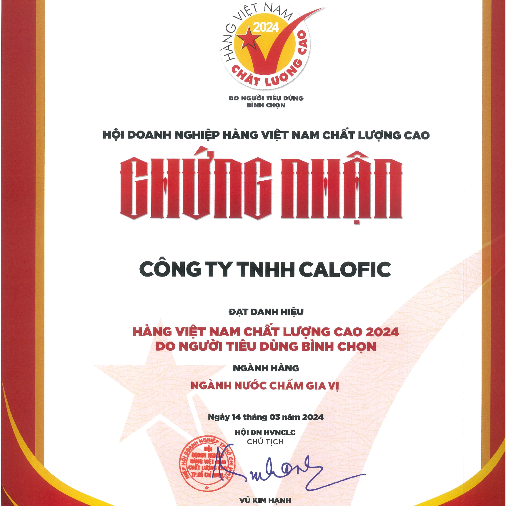Xin chúc mừng CALOFIC với giải thưởng này!